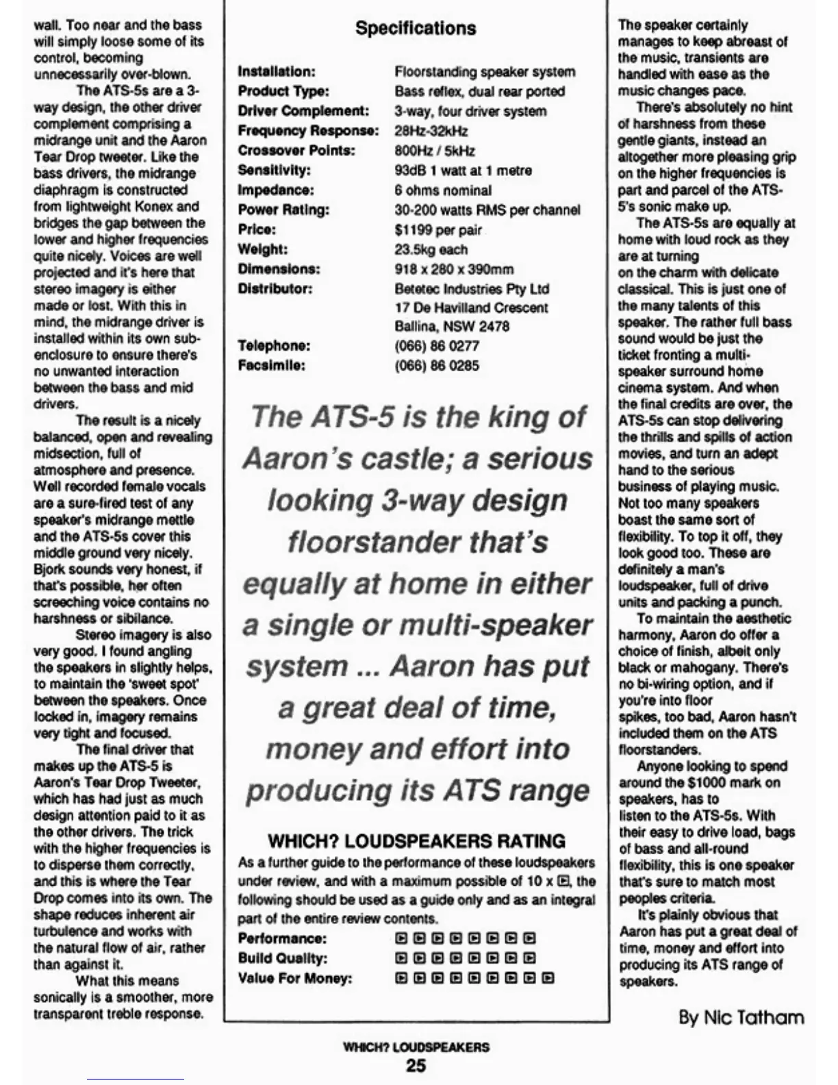 Aaron ATS-5 - Midrange, Tweeter, and Sonic Qualities; Midrange Driver and Stereo Imagery; Aaron Tear Drop Tweeter; Overall Sonic Performance