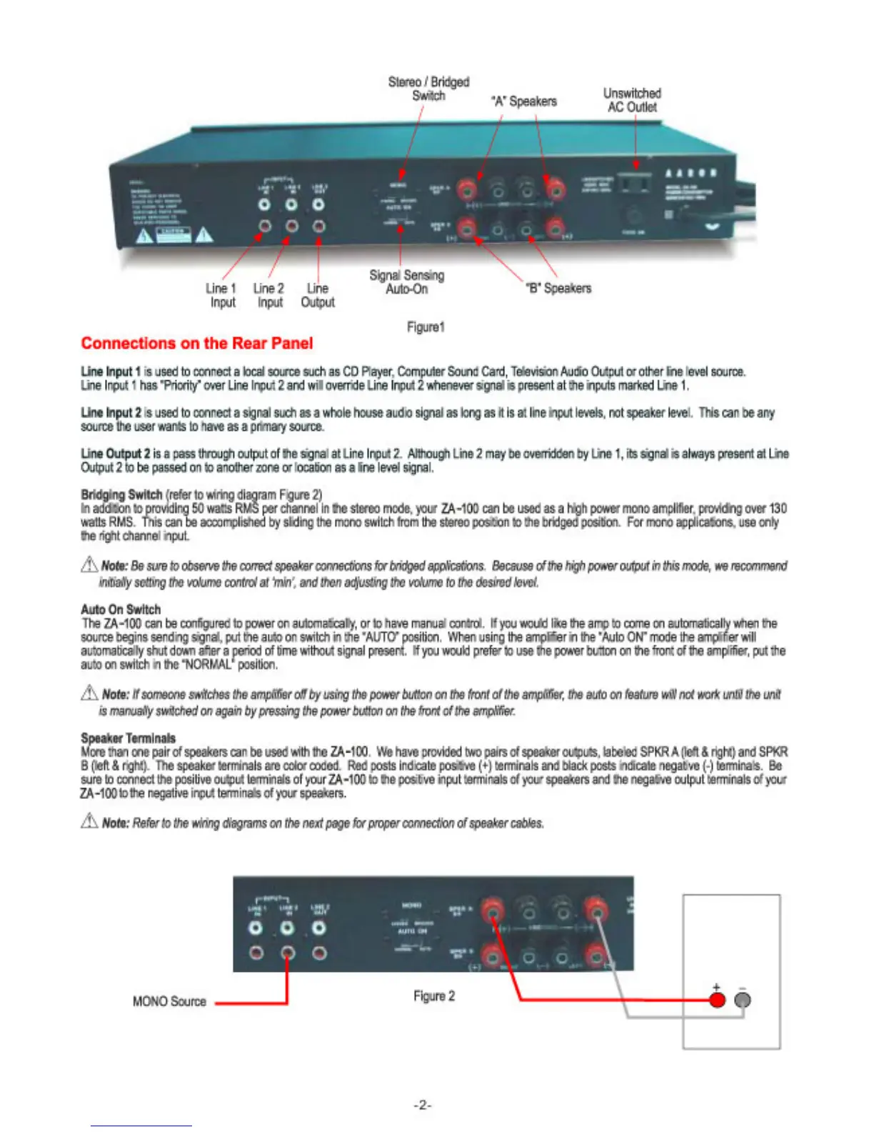 Aaron ZA-100 - Connections on the Rear Panel; Auto on Switch; Speaker Terminals