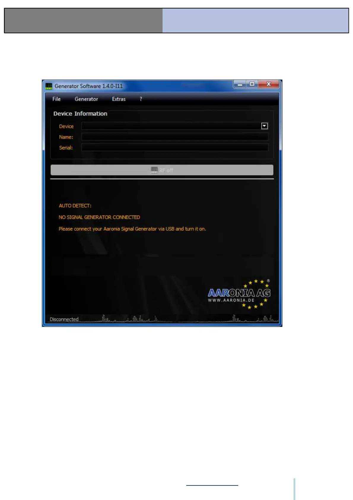 Figure SW-01 shows the main window of the software without the connected generator. The