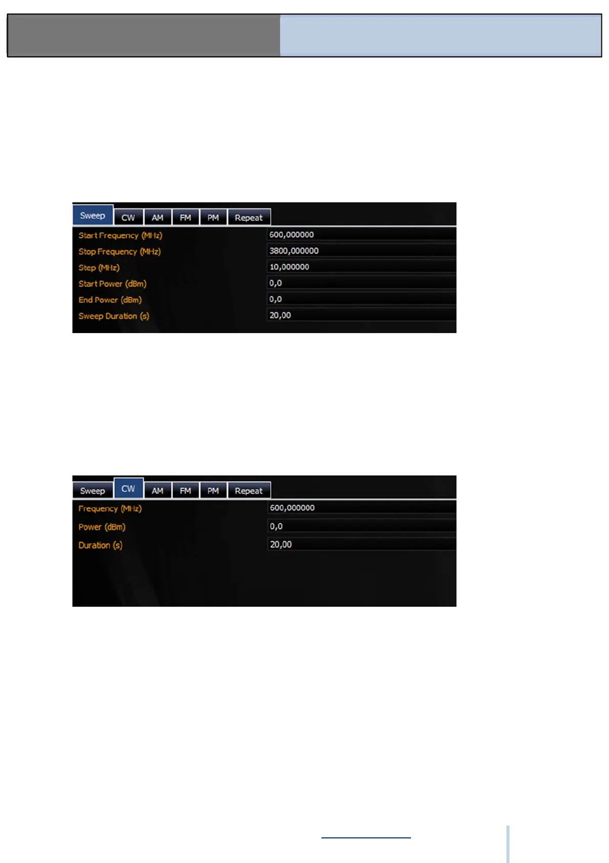 Uniformly runs through a frequency range from start to stop. If no increment is specified, then