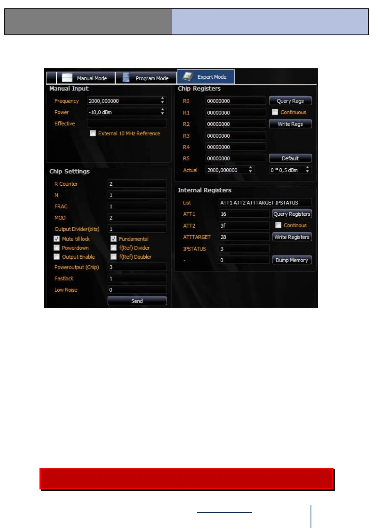 Under “Chip Registers,” you can directly manipulate the register values. With “Continuous,”