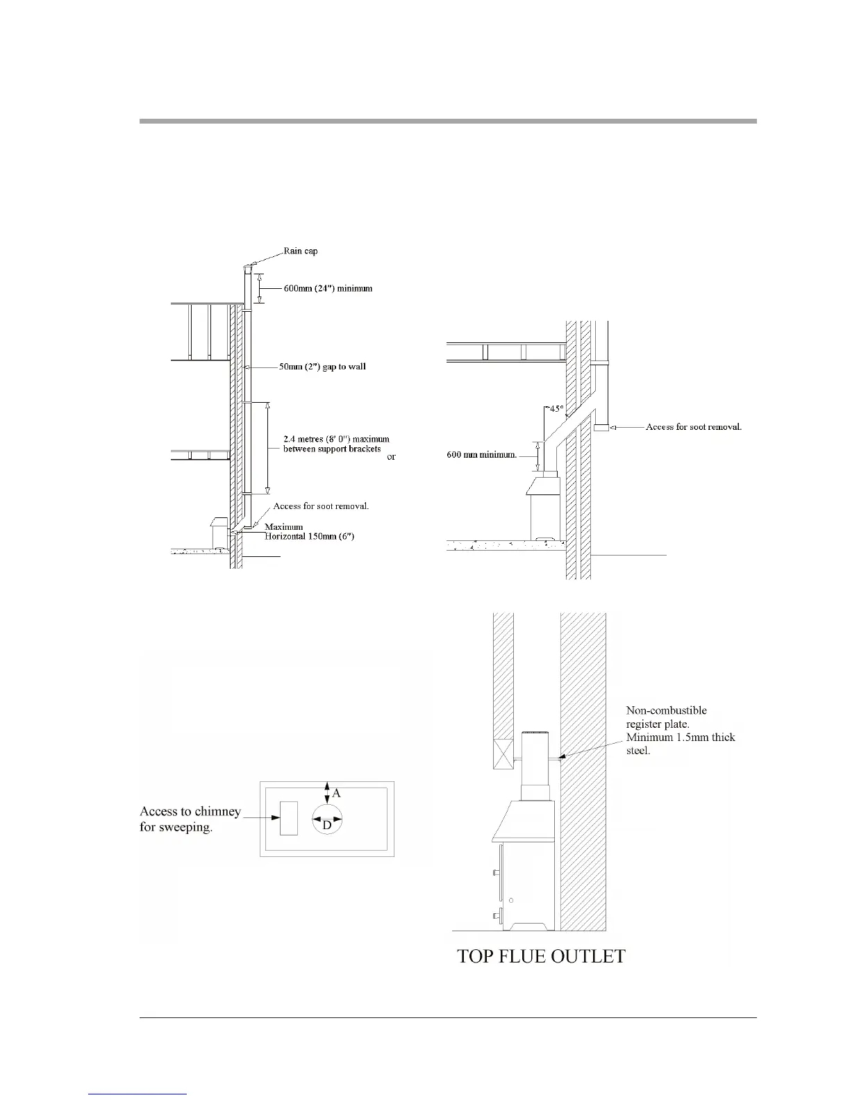 A is minimum clearance for non-insulated flue =