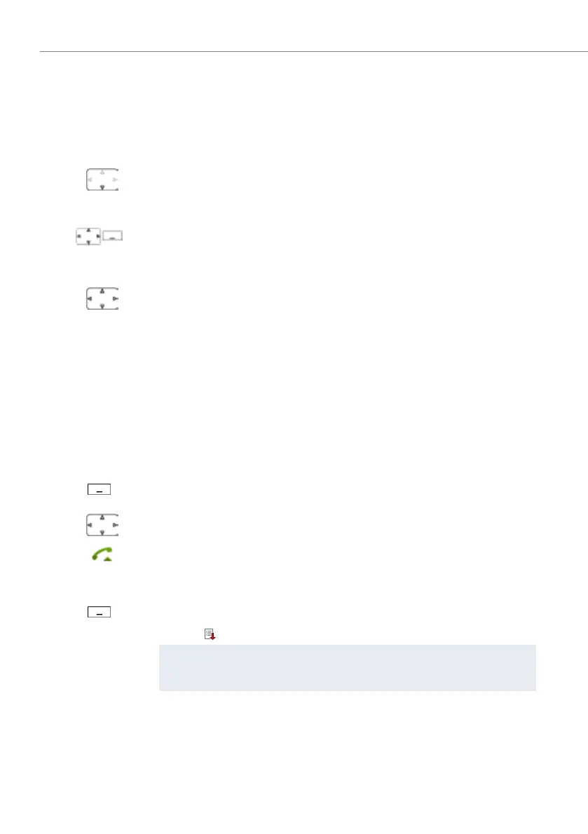 The call list of unanswered calls can also be selected using the menu: Menu >