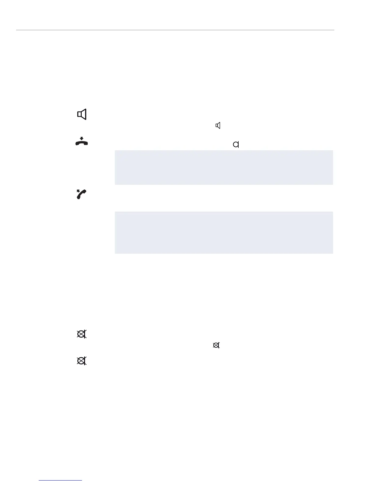 ➔The loudspeaker and hands-free microphone are now deactivated.