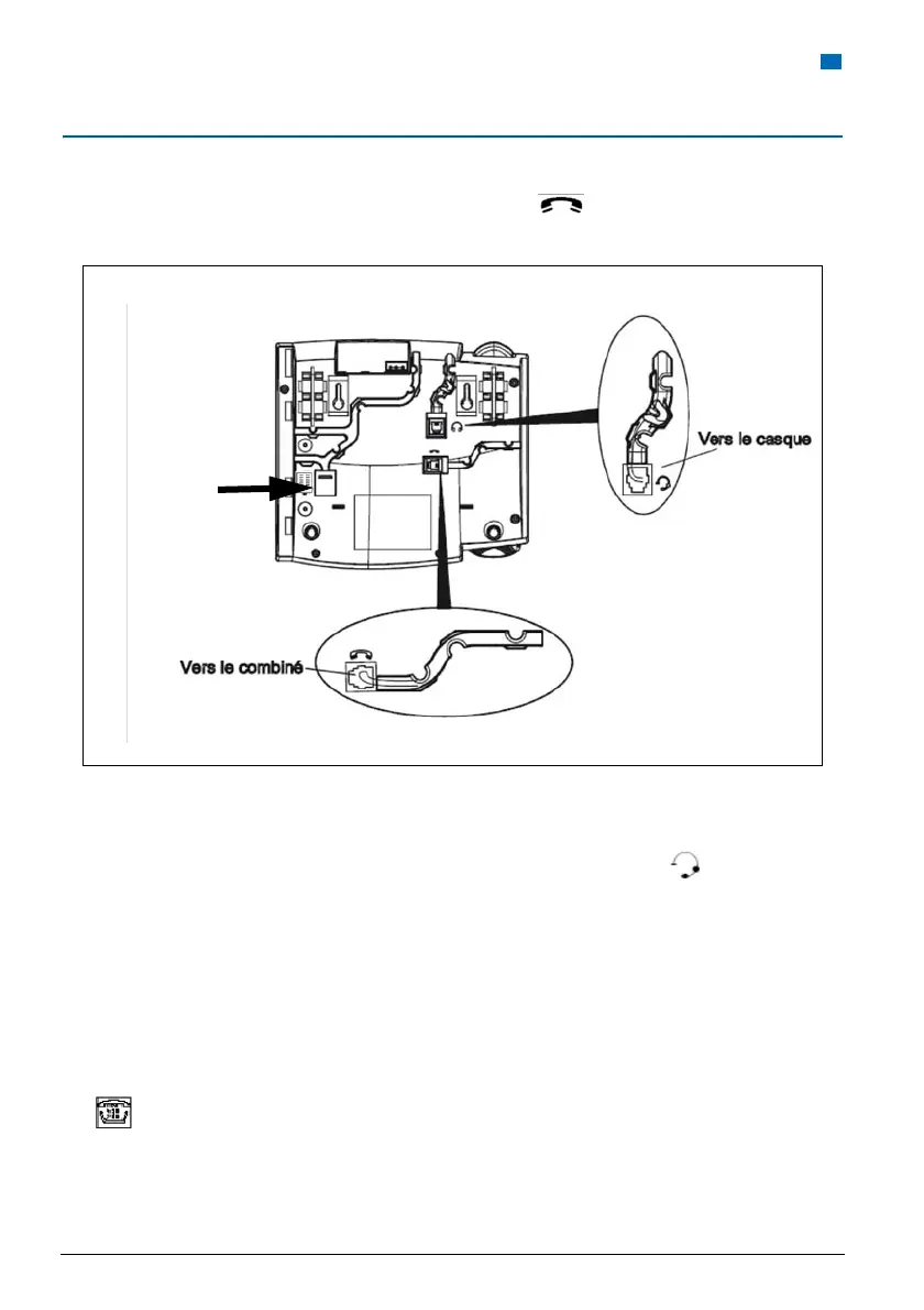 Turn the phone and locate the marked handset socket . Insert one of the ends of the