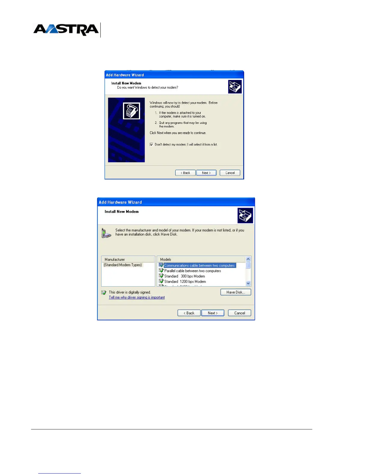 • In the following screen, tick the option "Do not detect my Modem"