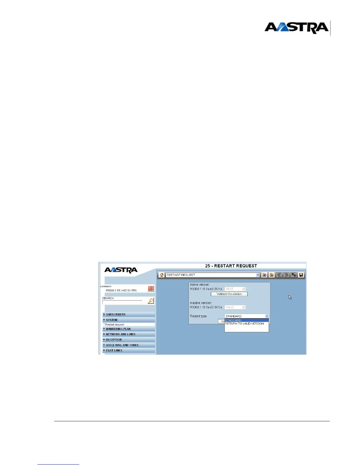 Validation and possible cancel requests are proposed in the menu "SYSTEM>Restart