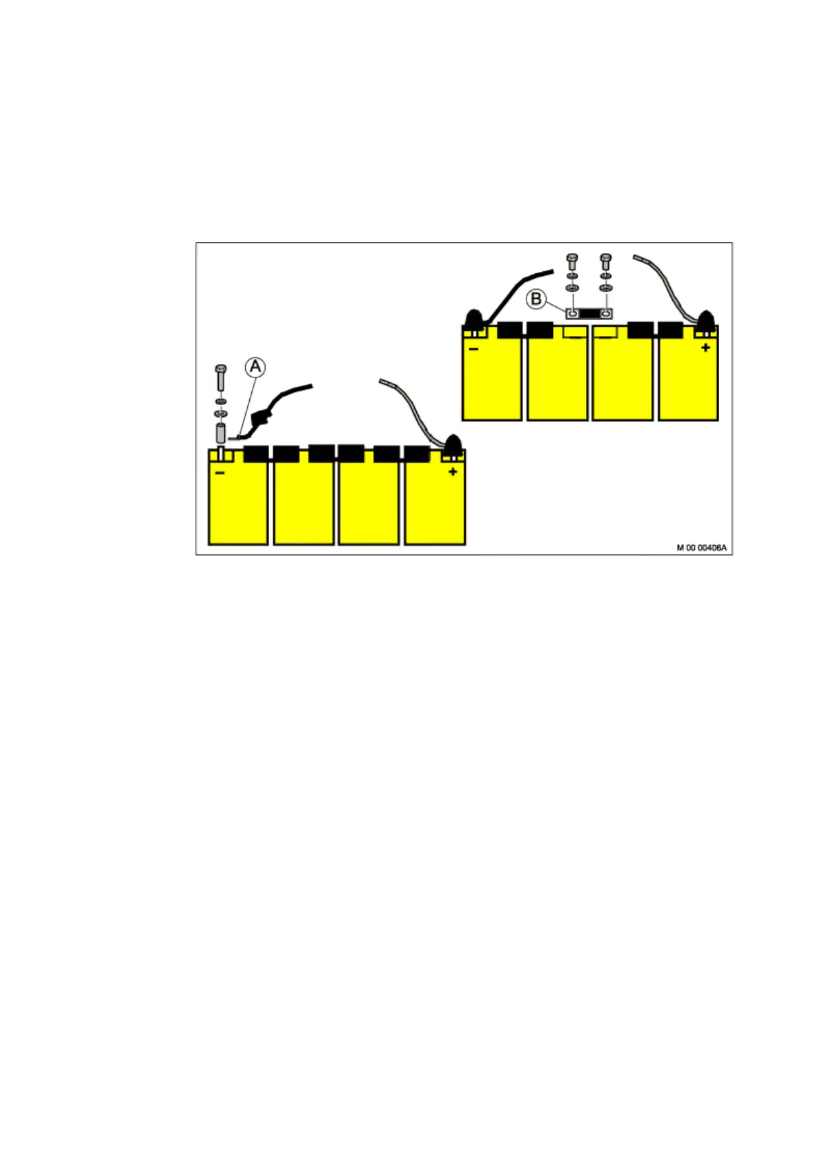 Figure 70 Example of Removing the Negative Battery Conductor (A) and an