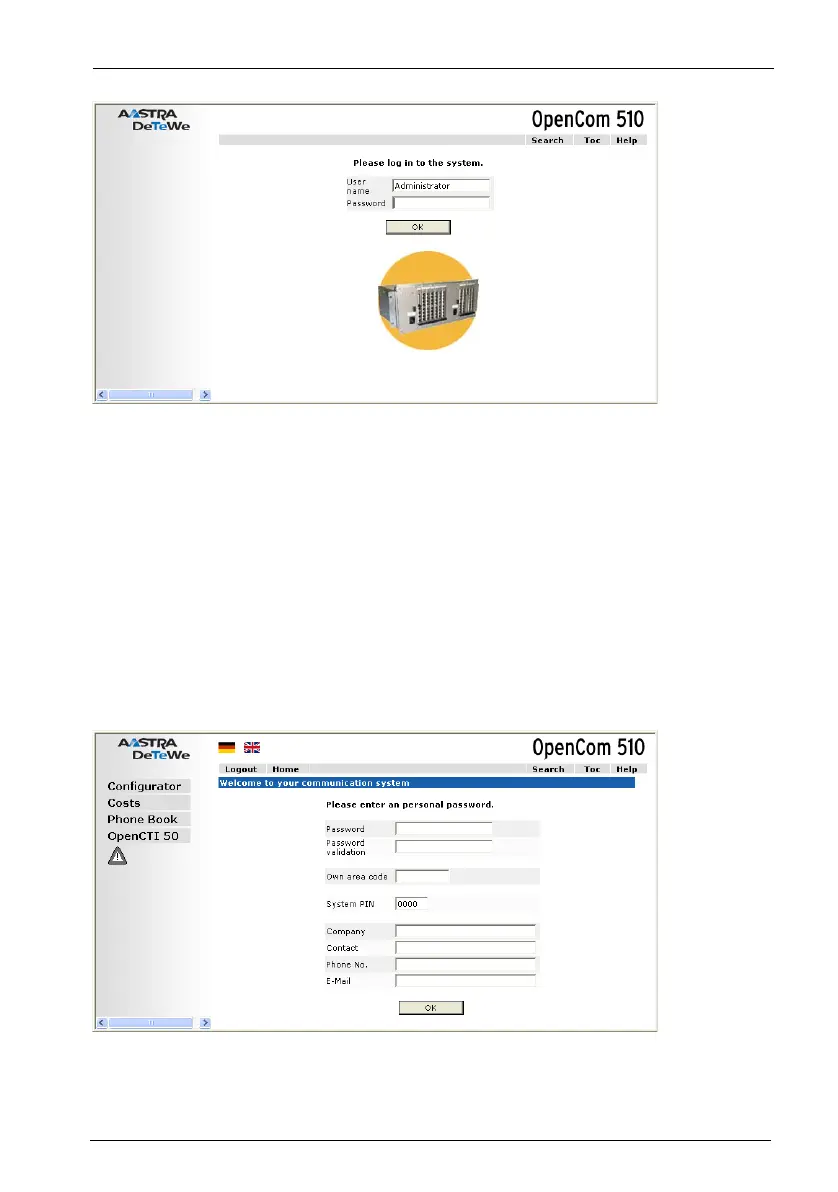 3. To commence configuration, you must first log on. For the initial configuration,