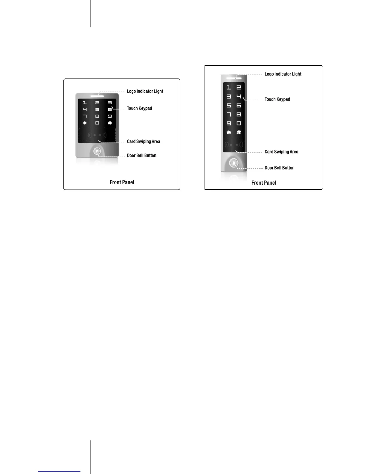 and keypad operation functions, lock, alarm, ring bell, exit button and the mag-