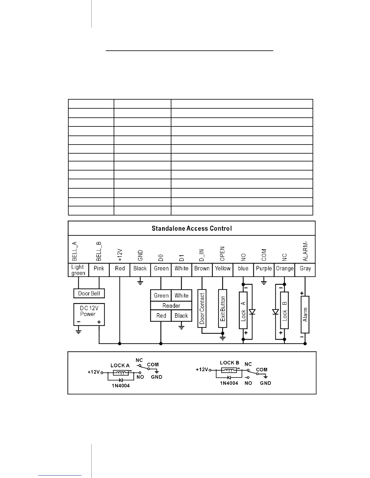 Lock A connection - for NC type - Normally Close - locked without supply power