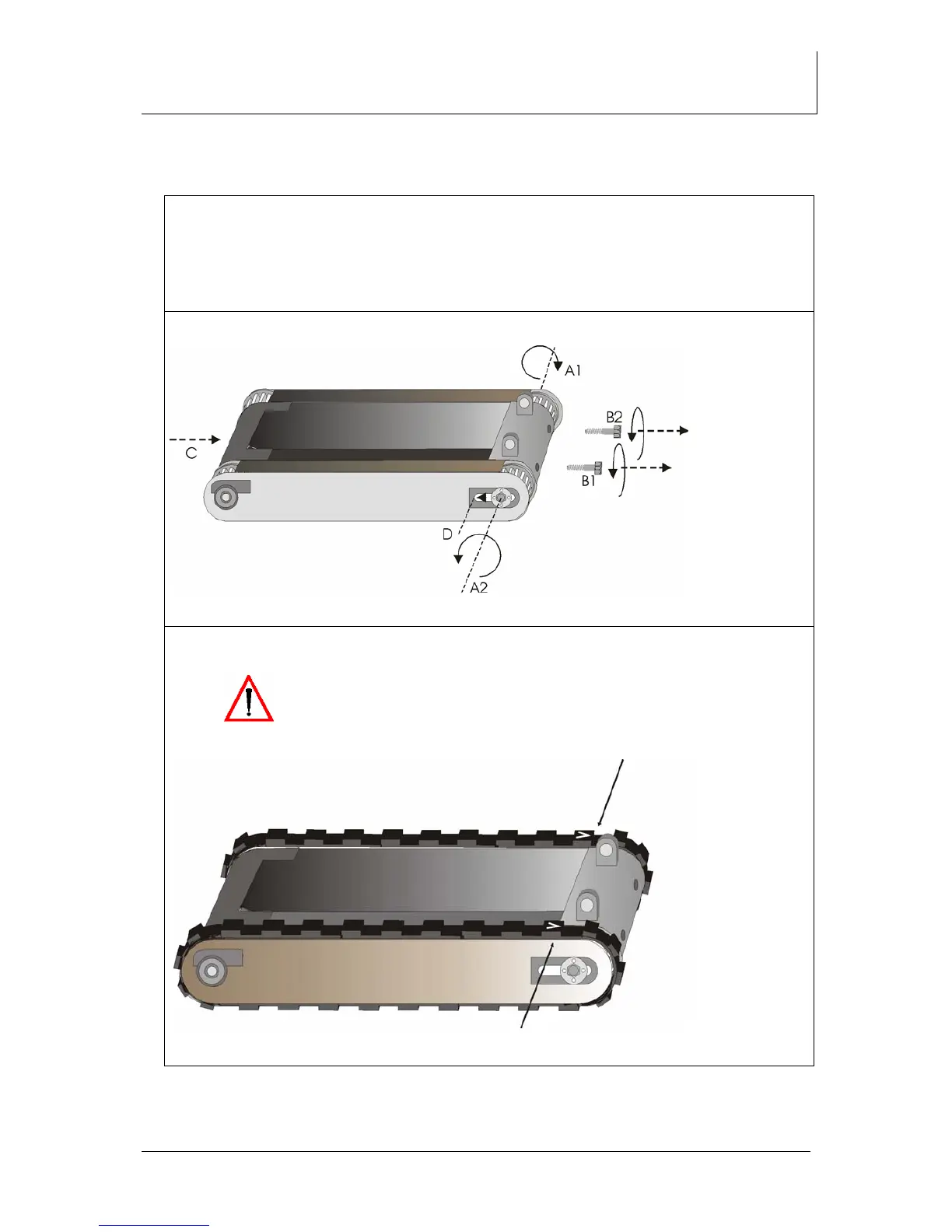 • Turn bolts b1 and b2 counter clockwise until the axle is at point d