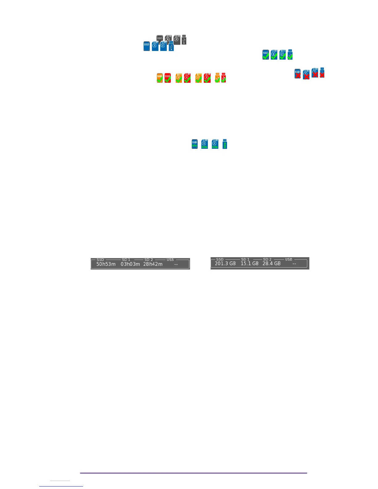 • Blue, with a red X: not present or faulty or full, while being used by a Recording process.