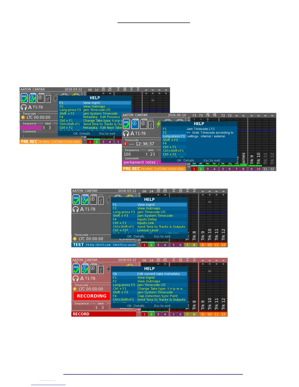 This help box is available in the Record, Pre-Record, Test, Play, Browse, Outmaps, and InGrid