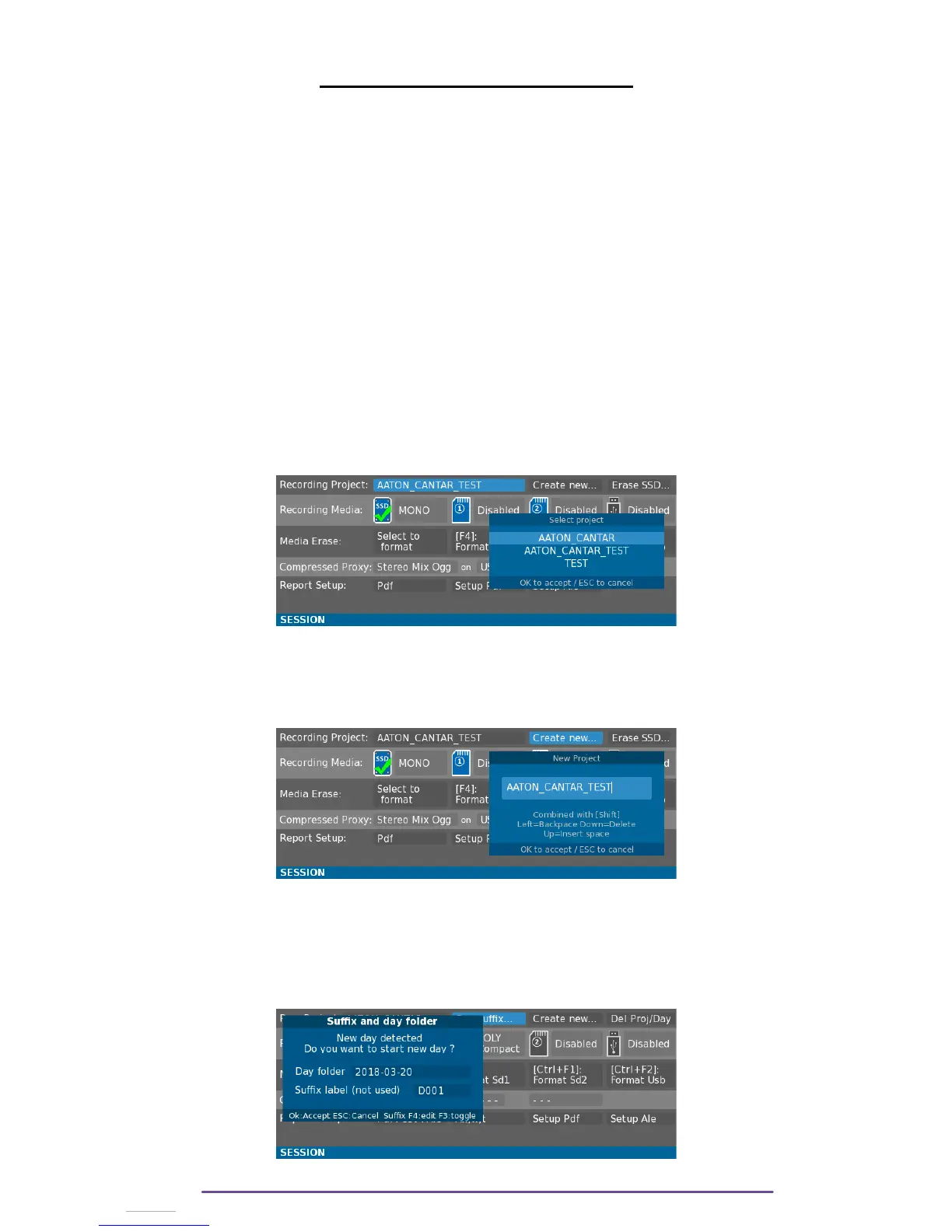 On the first line of parameters named “Recording Project”, using the directional keys, select the