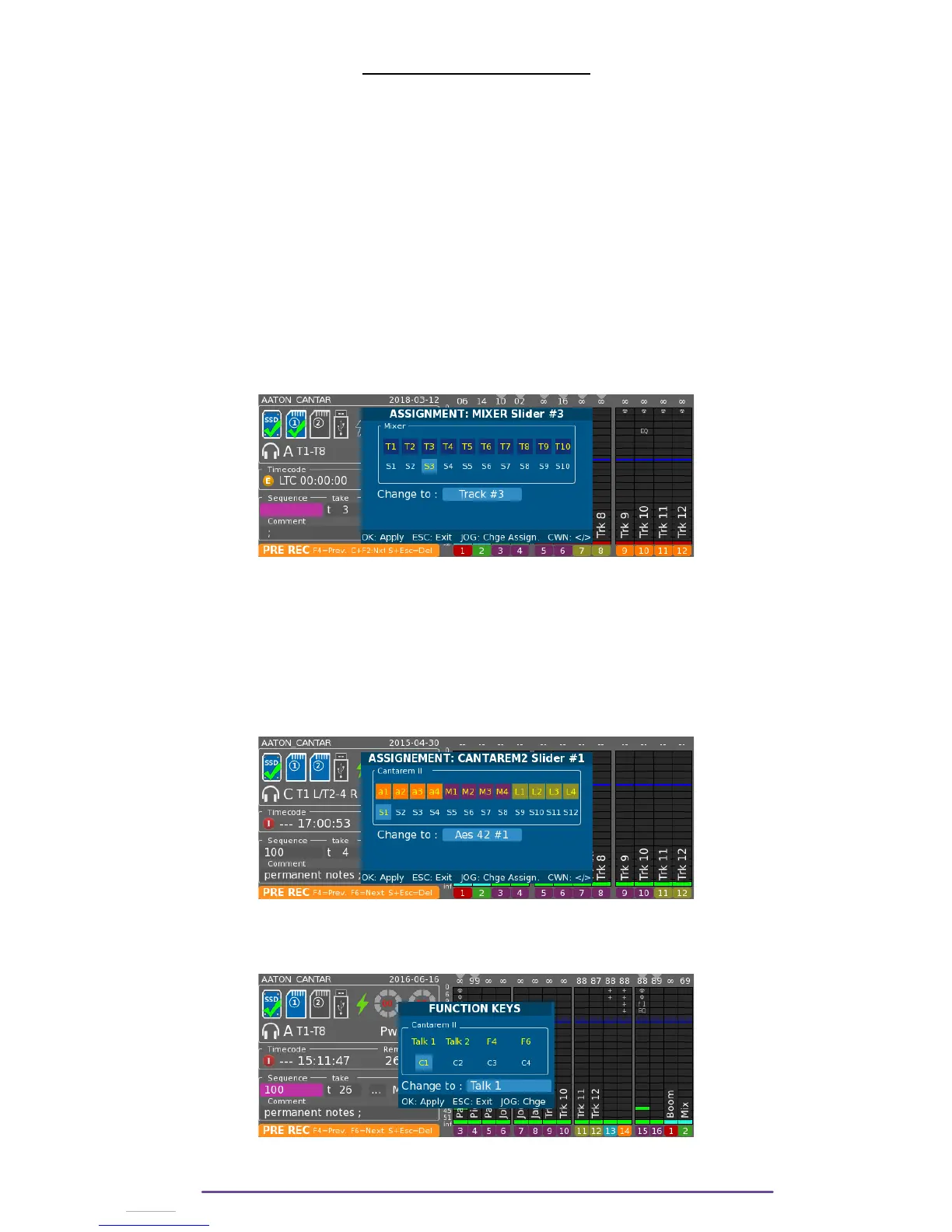 To open the Assignation panel, press and hold the Shift + Slider Solo buttons on the Cantarem II.