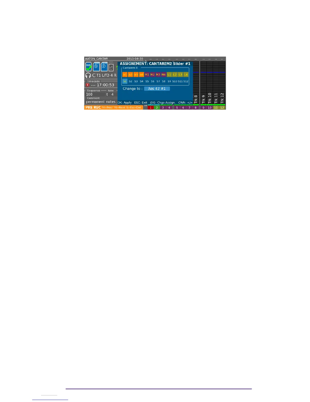 To open the Assignation panel, press and hold the Shift button on the Cantar + a potentiometer