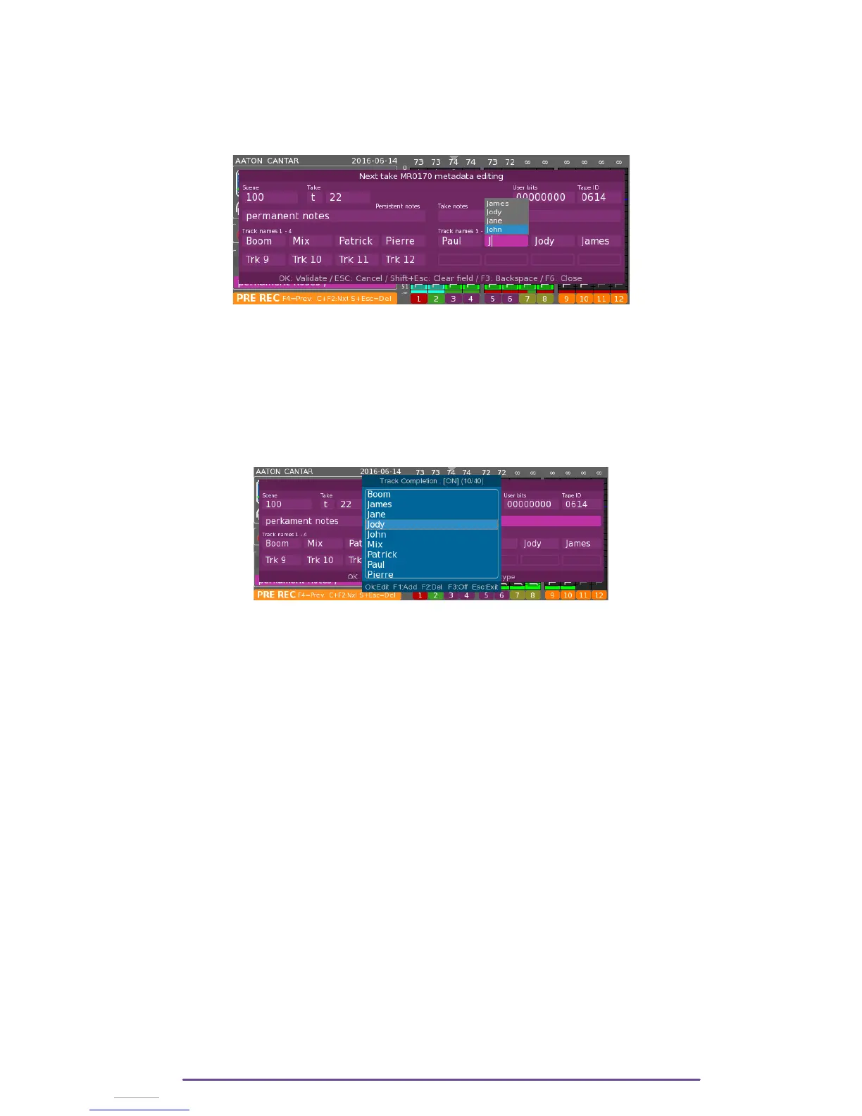 While typing tracknames, a list with previous entered tracknames is displayed according to the