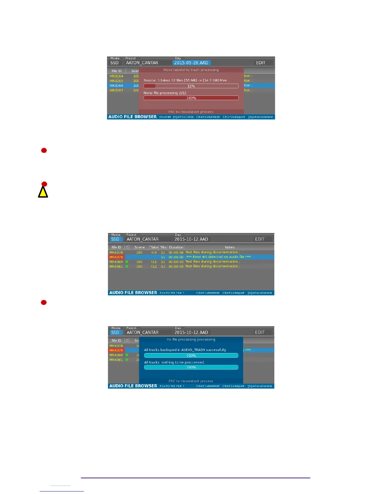 From the Audio Browser Menu, select “AUDIO_TRASH” as day folder :