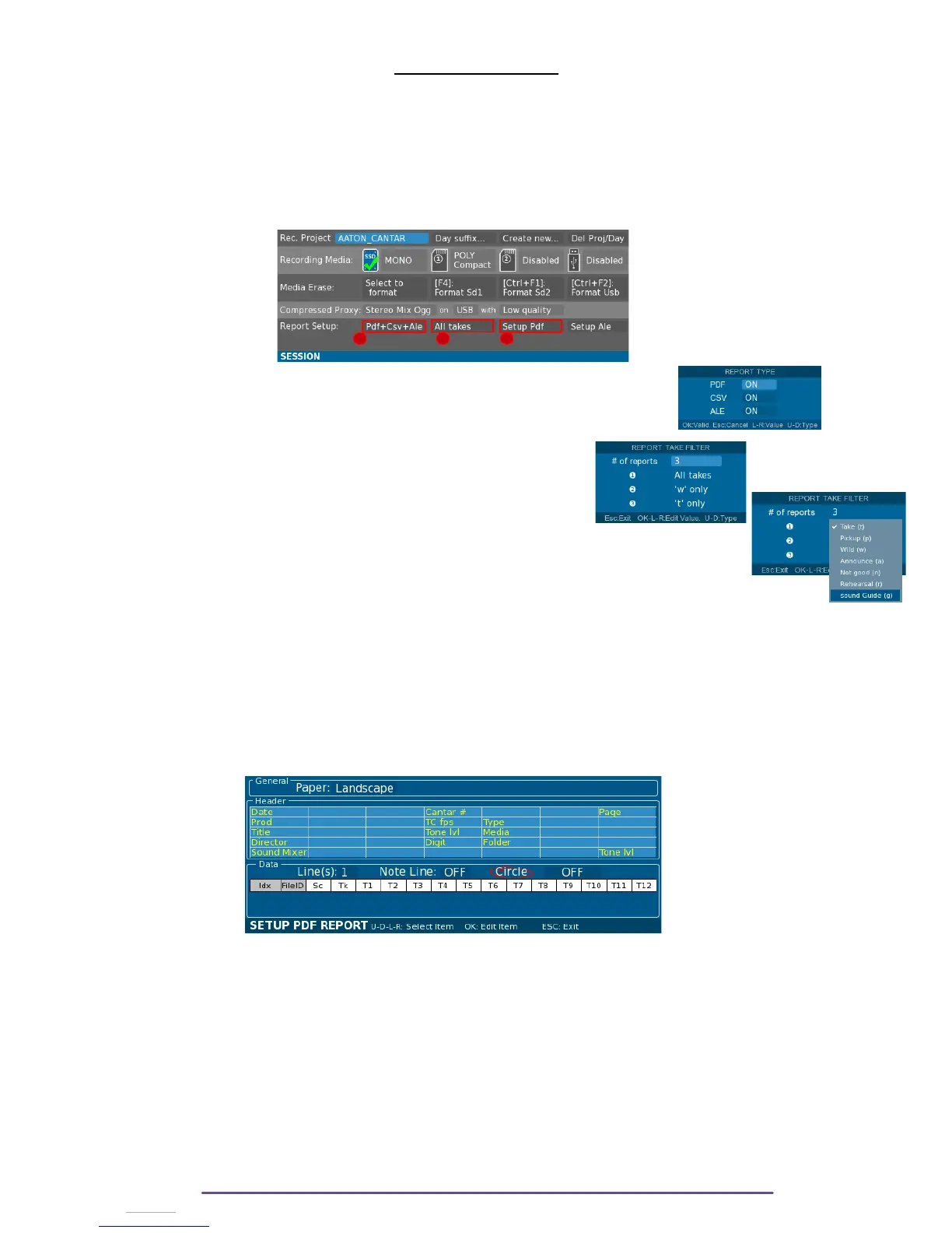 Sound Reports are setup in the Session Menu (while the Main Selector is in the 2 o'clock