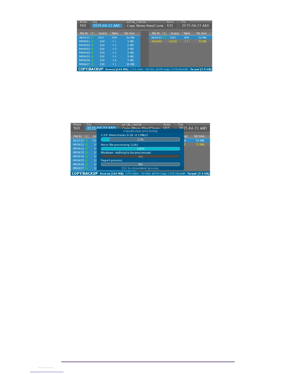 The backup process can be started into two modes: • Copy: by pressing the F4 button