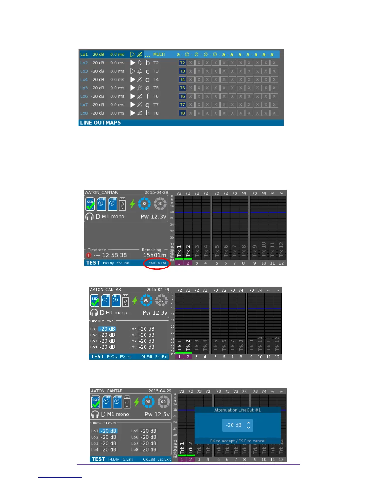 Press the F6 button to open the LineOut Level panel.
