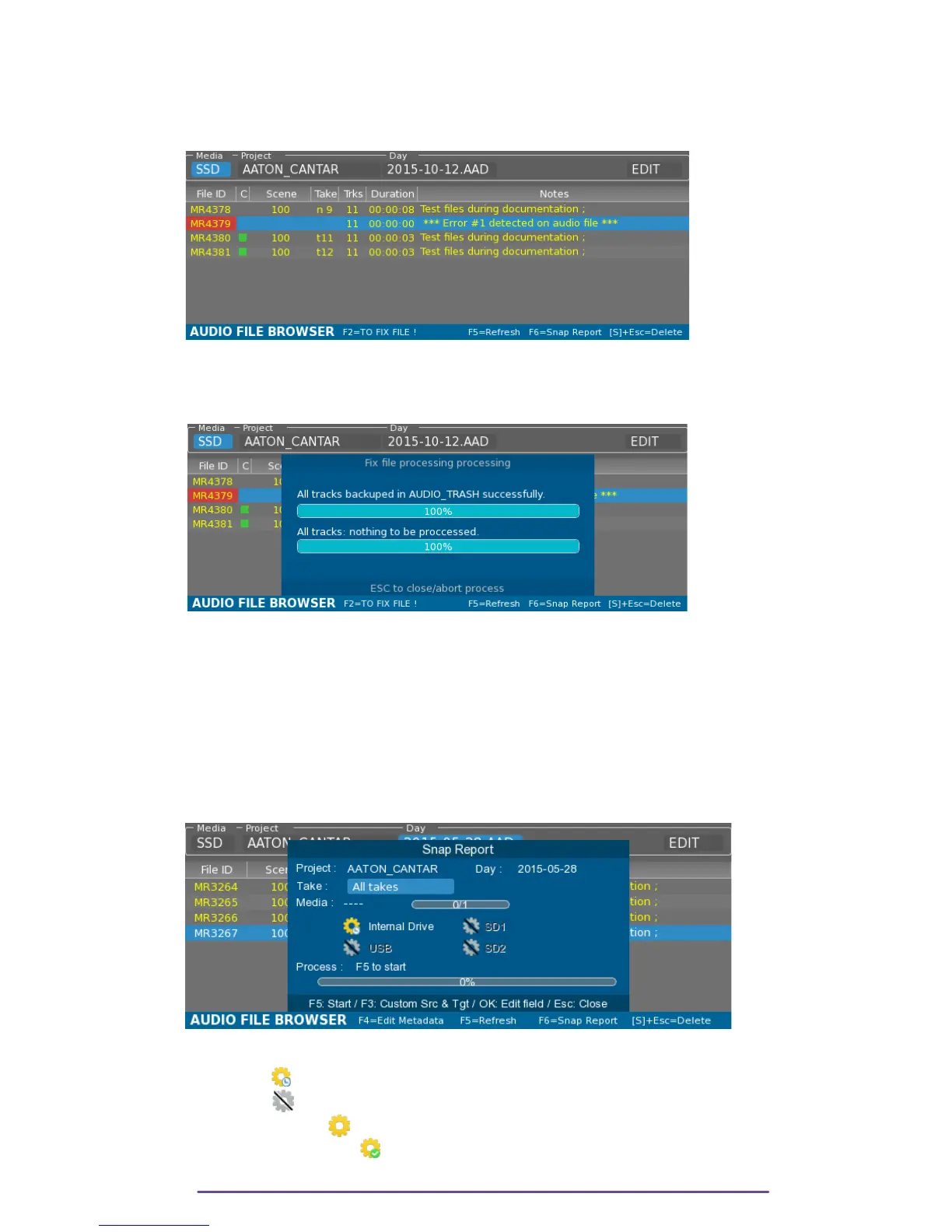 The Snap Report process, for each media detected, scans the current selected Project and Day