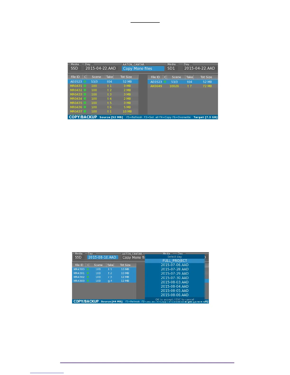 • Copy Monophonic files/Clone: copy files from Source to Target.
