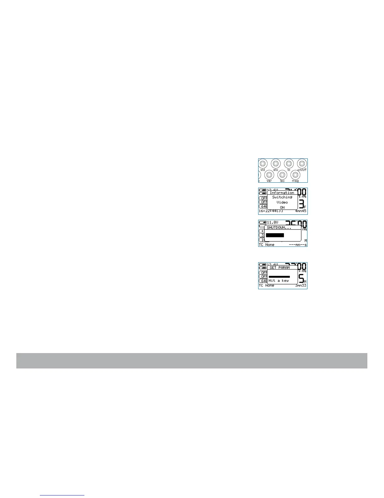 To turn ON the video-assist, press the «set» key and then the «on/off» key.