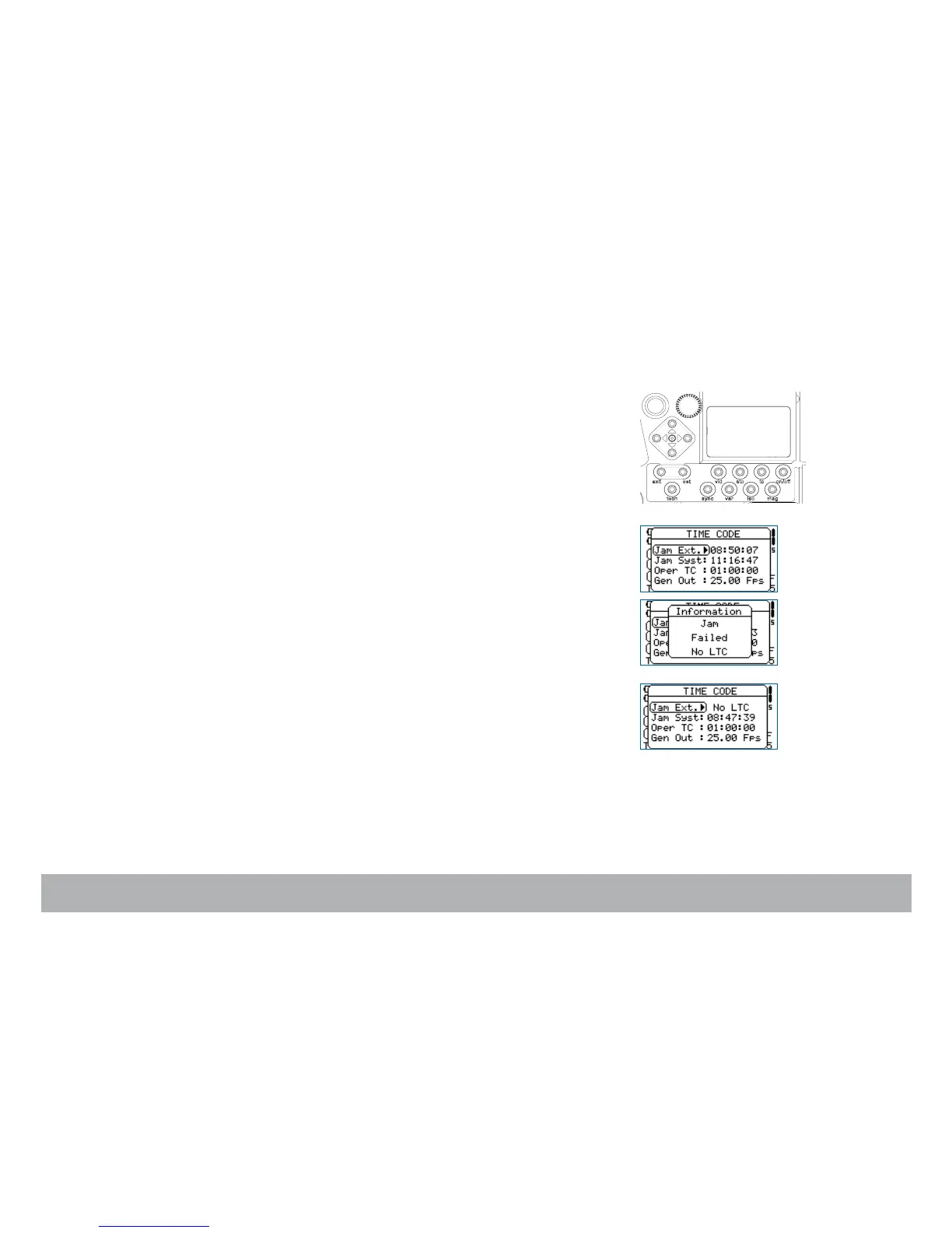 If no signal is present, the message Jam Failed No LTC is displayed.