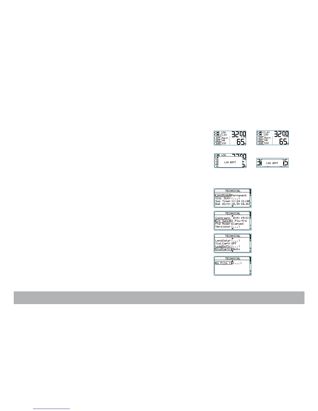 LEMO mode, Video out, Syst Time, Batt Alert, Contrast,