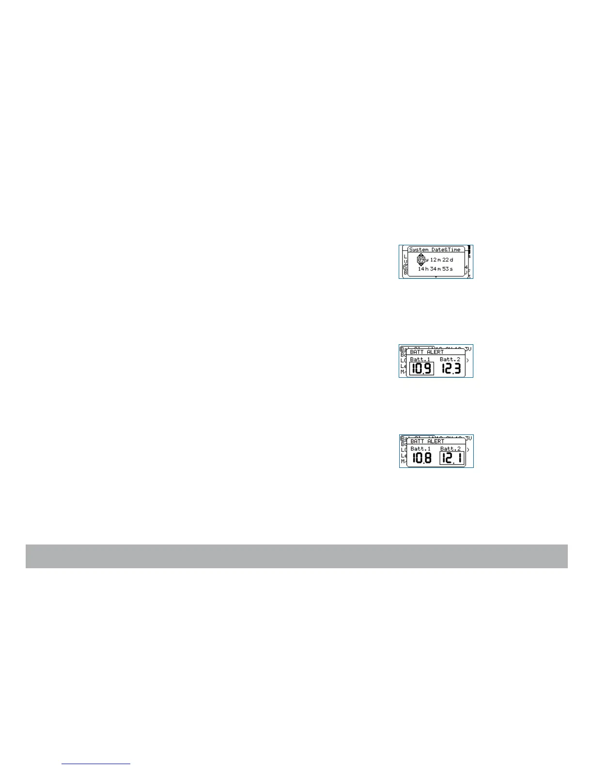 Penelope displays alerts when the battery voltage falls below a preset level.