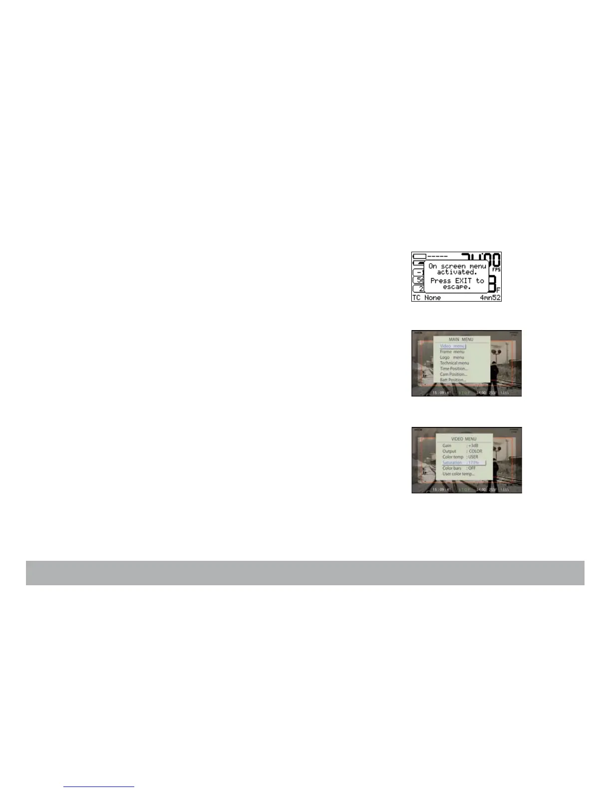 To power up the VHR video-assist, press the «set» key then the «on/off»