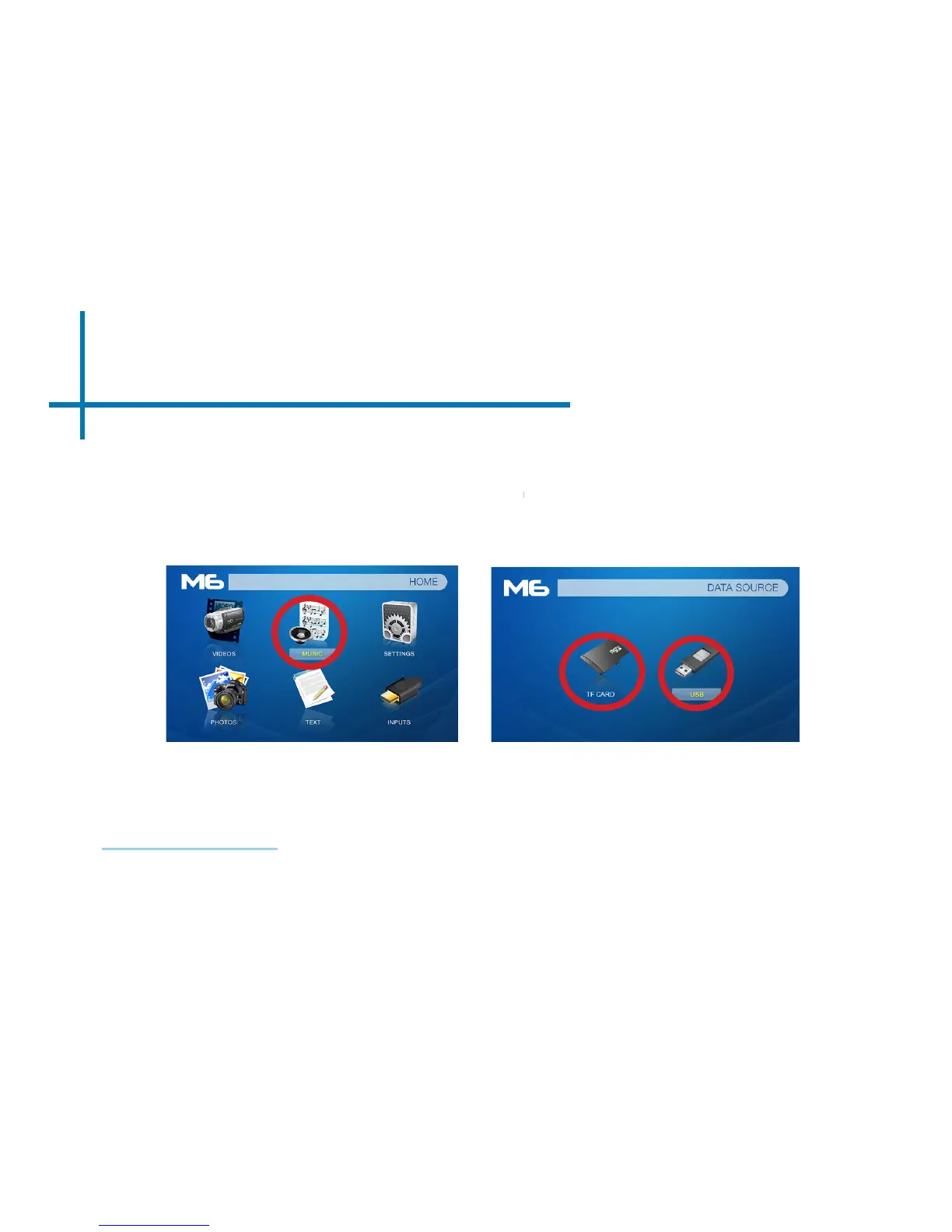 The M6 will show all folders and les you have on your USB or TF Card drive.
