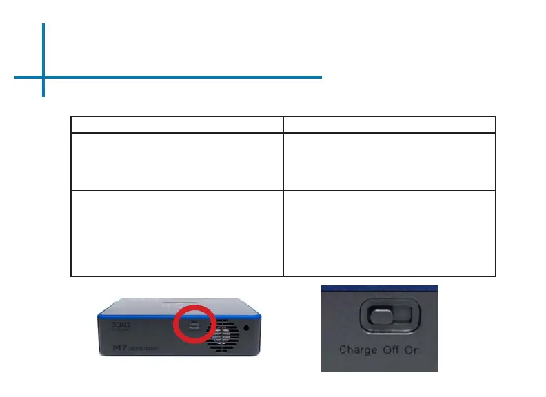 The projector is in low battery. Connect the power cord to the M7. Connect the