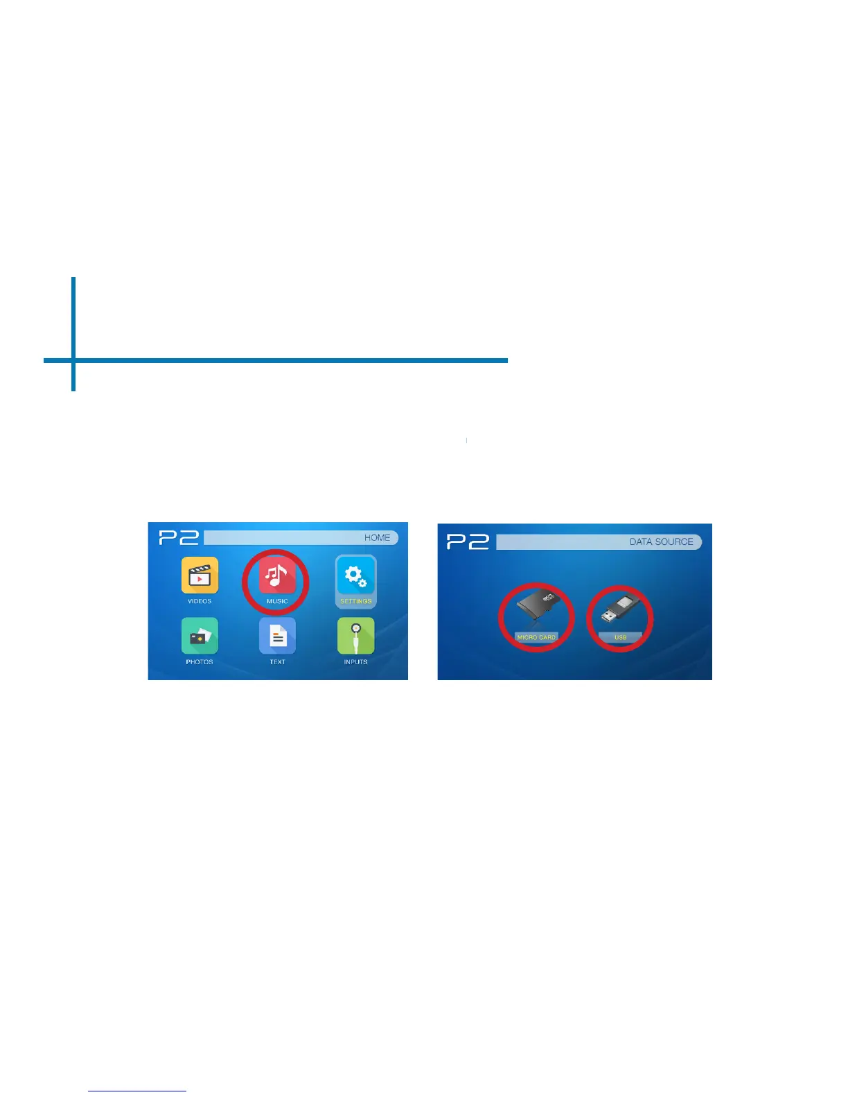 The P2-B will show all folders and les you have on your USB or TF card drive.