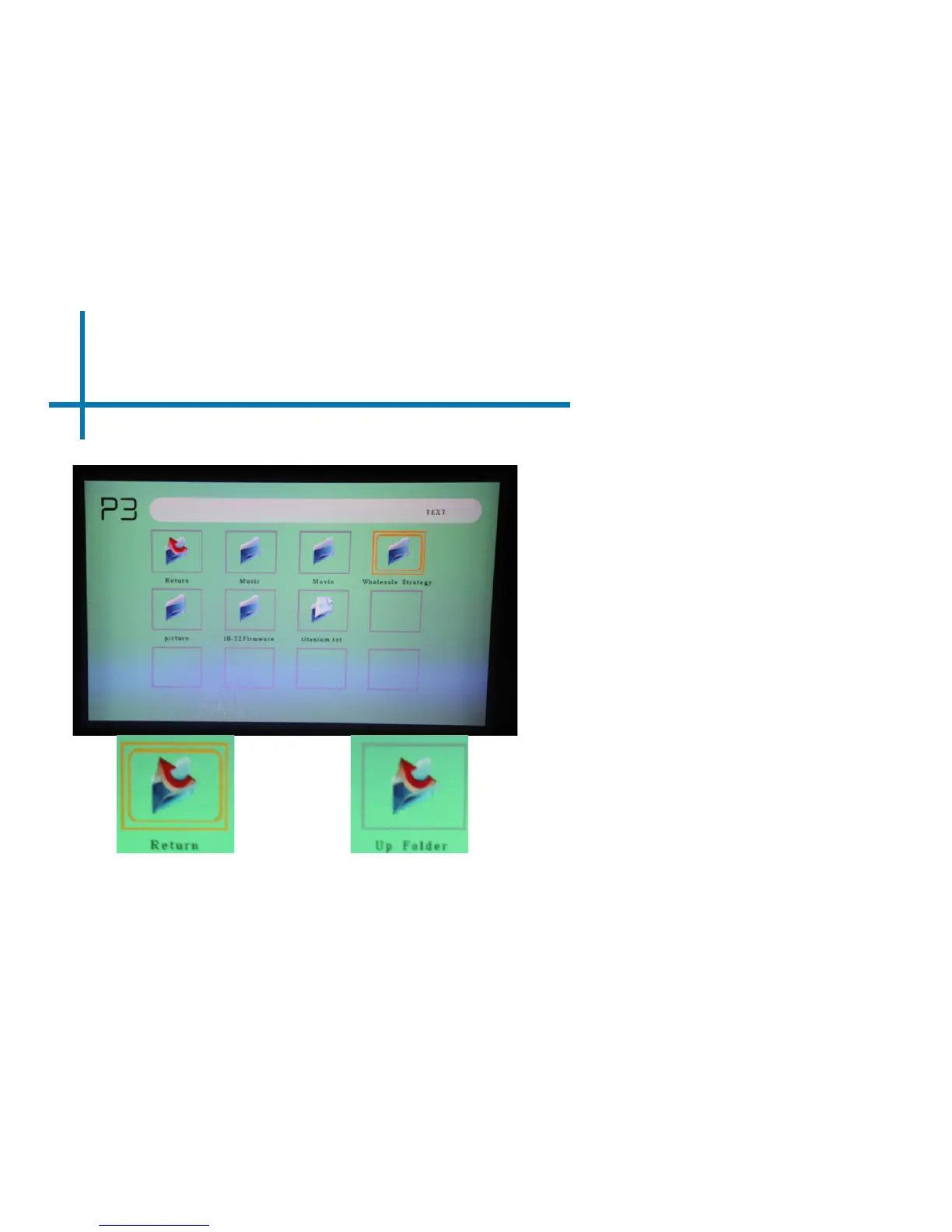 The P3 will show all folders and les you have on your USB Drive.