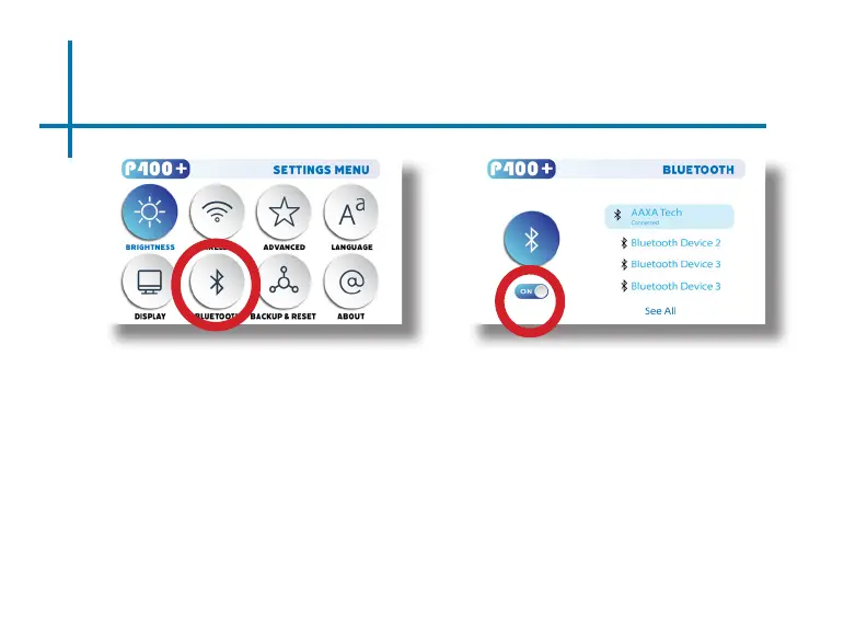 • In the Bluetooth submenu, toggle the “On/O” switch beneath the blue-