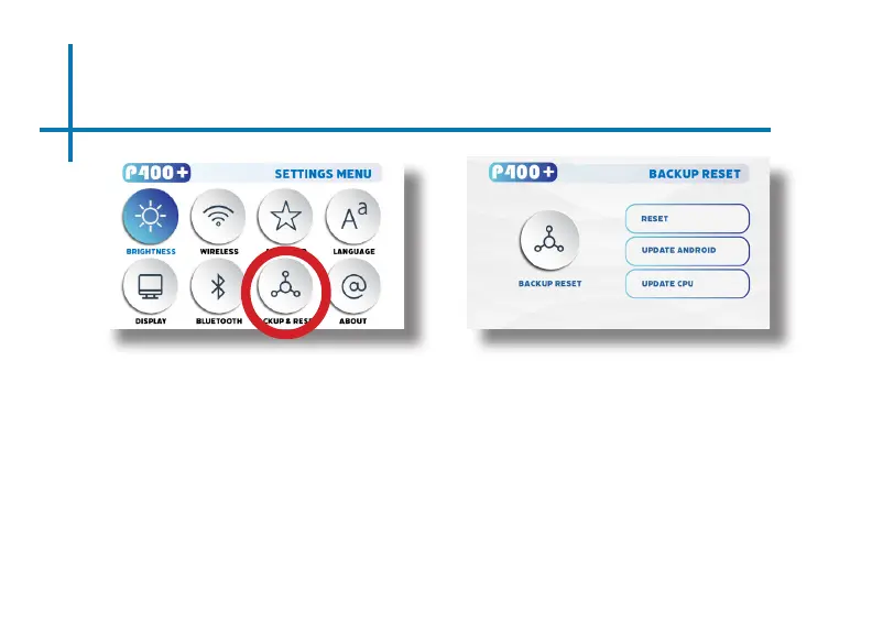In the Backup Reset menu, you can choose to Reset the P400+, or