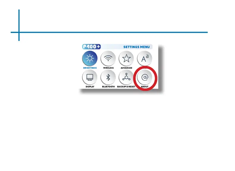 • In the Settings Menu, go to the About Menu by selecting the about icon