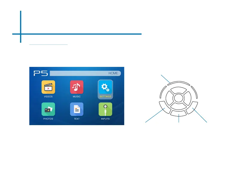 • Press the left and right directional buttons to choose an icon from the main menu.