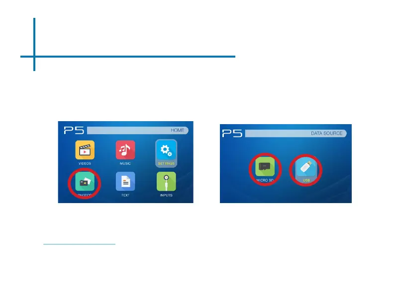 The P5 will show all folders and les you have on your USB or MicroSD drive.