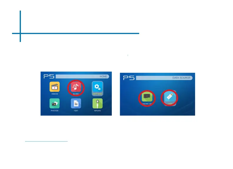 The P5 will show all folders and les you have on your USB or MicroSD drive.