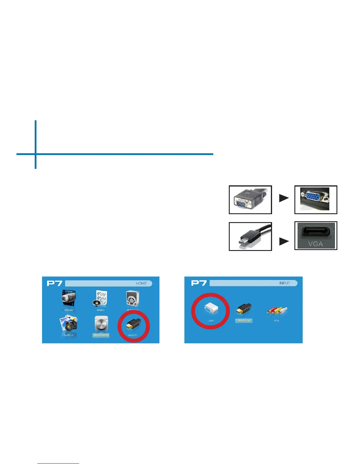 Select the “Inputs” Icon Then select the “VGA” Icon