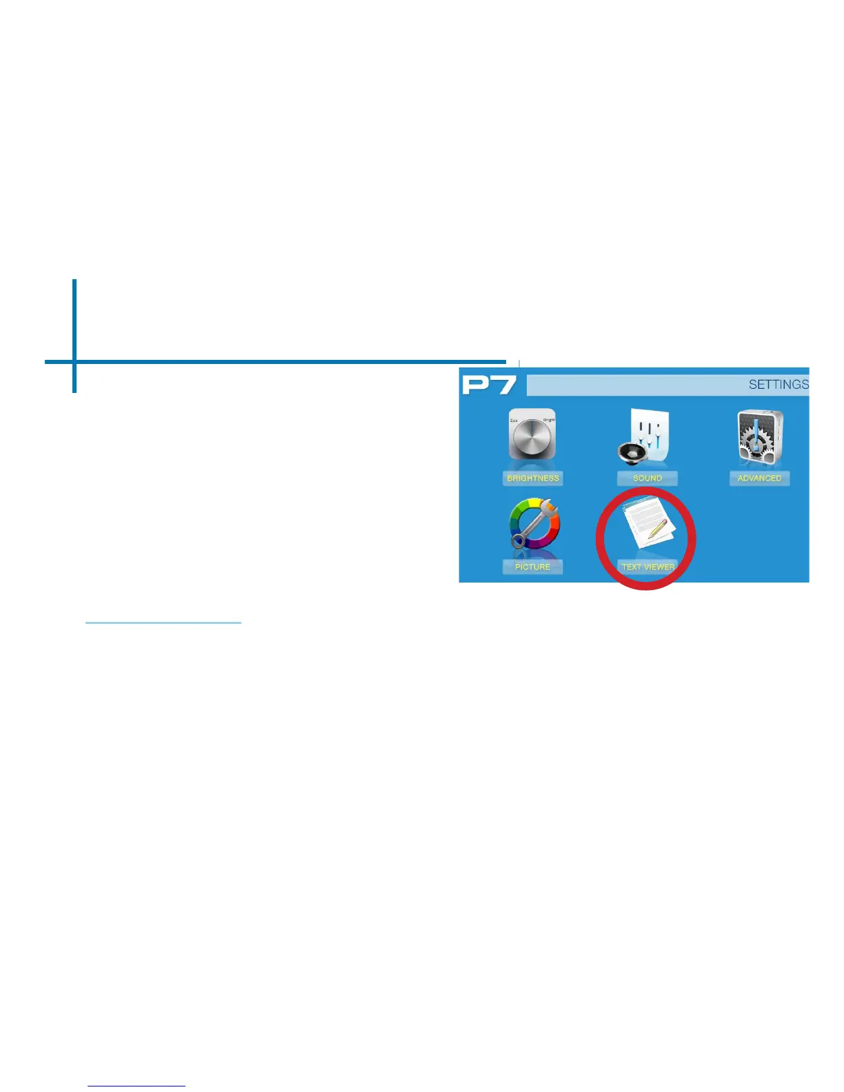The P7 allows you to view .txt les only. Select the le you want to view in the le menu