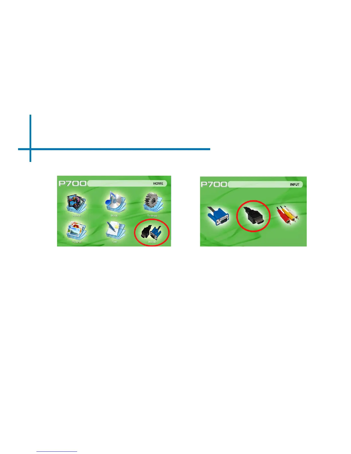 Select “INPUT” icon Select “HDMI” icon