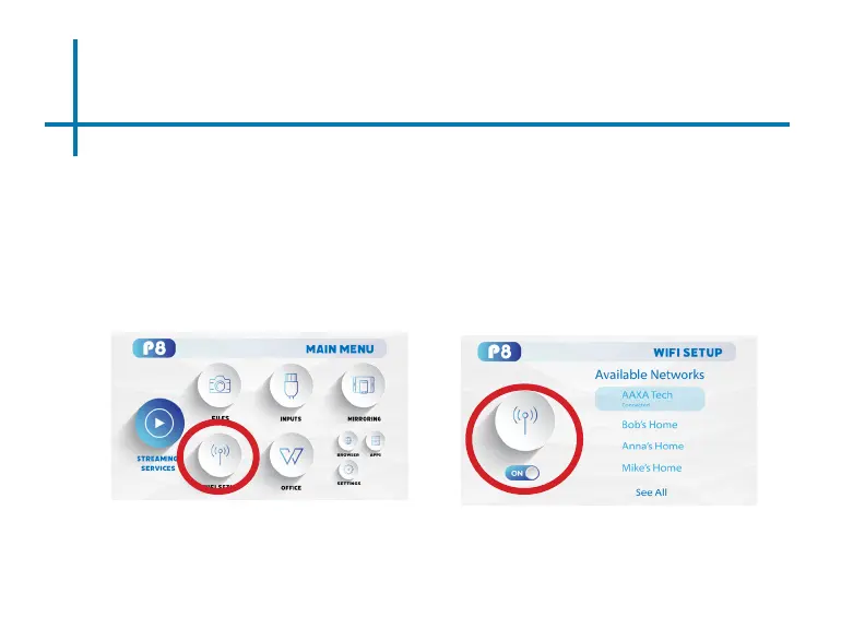 • In the Wi Menu, toggle the Wi icon to “On” and select the Wi network you