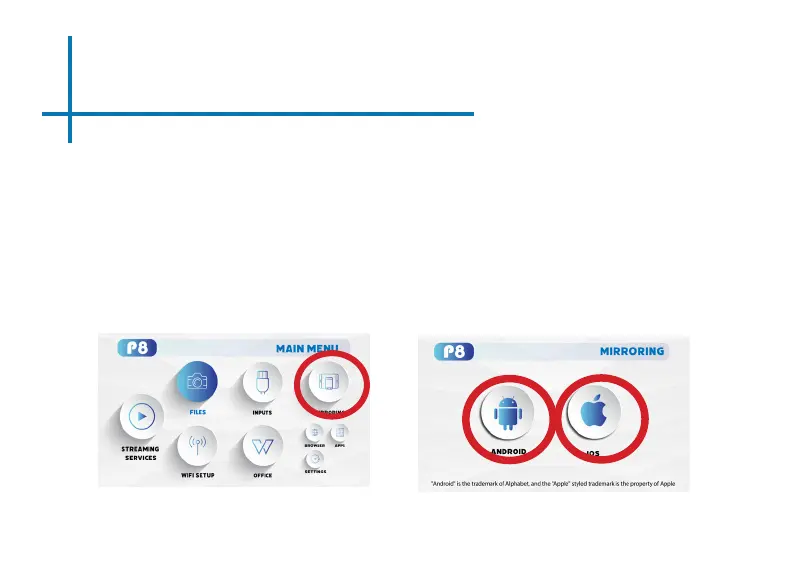 • After connecting the P8 to wi, in the Main Menu, choose “Mirroring” icon