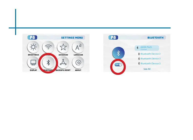 • In the Bluetooth submenu, toggle the “On/O” switch beneath the blue-