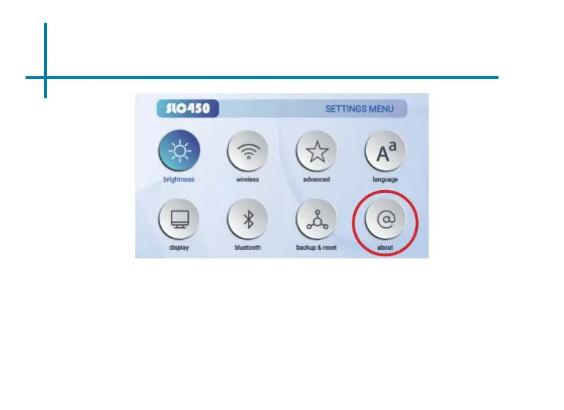 • In the Settings Menu, go to the About Menu by selecting the about icon
